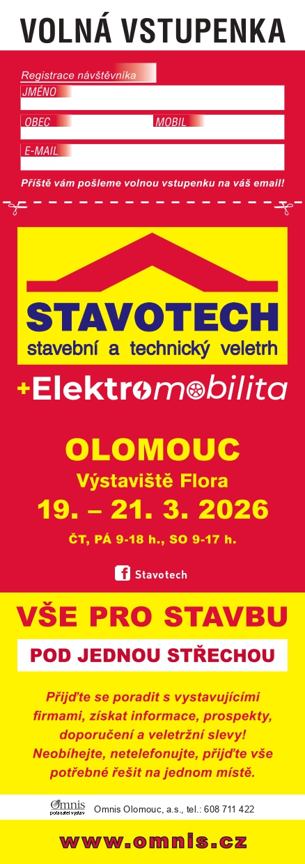 ✨ Zveme vás na veletrh STAVOTECH 2026 v Olomouci – VSTUPENKA ZDARMA ✨
